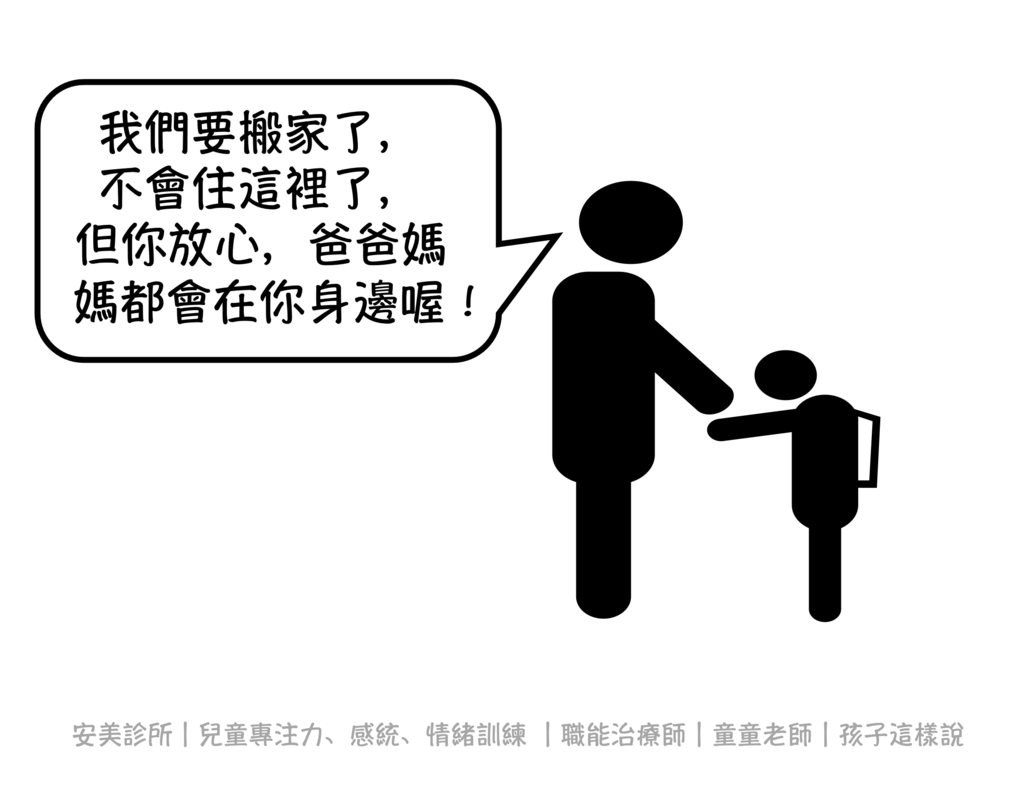 許多家長怕孩子說再見,或結束一些關係後會難過,就採取迂迴的方式,想說過了一段時間等他們「自然忘記」,但與其不說清楚留下許多不確定感,倒不如好好的與孩子說,讓他們在確定之後,更容易轉換到新的關係或環境中。此外,也有家長認為只要注意孩子在新環境適應的狀況就好了,就忽略孩子與舊環境關係的處理,事實上,兩者都很重要喔!